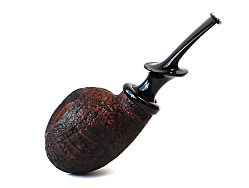Sandblasted/Smooth Blowfish, Reverse Calabash, with Horn, Two Stems (one for 9mm filter)